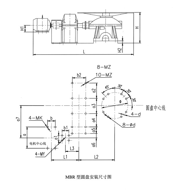 MBR 型圓盤(pán)給料機(jī)安裝圖及尺寸